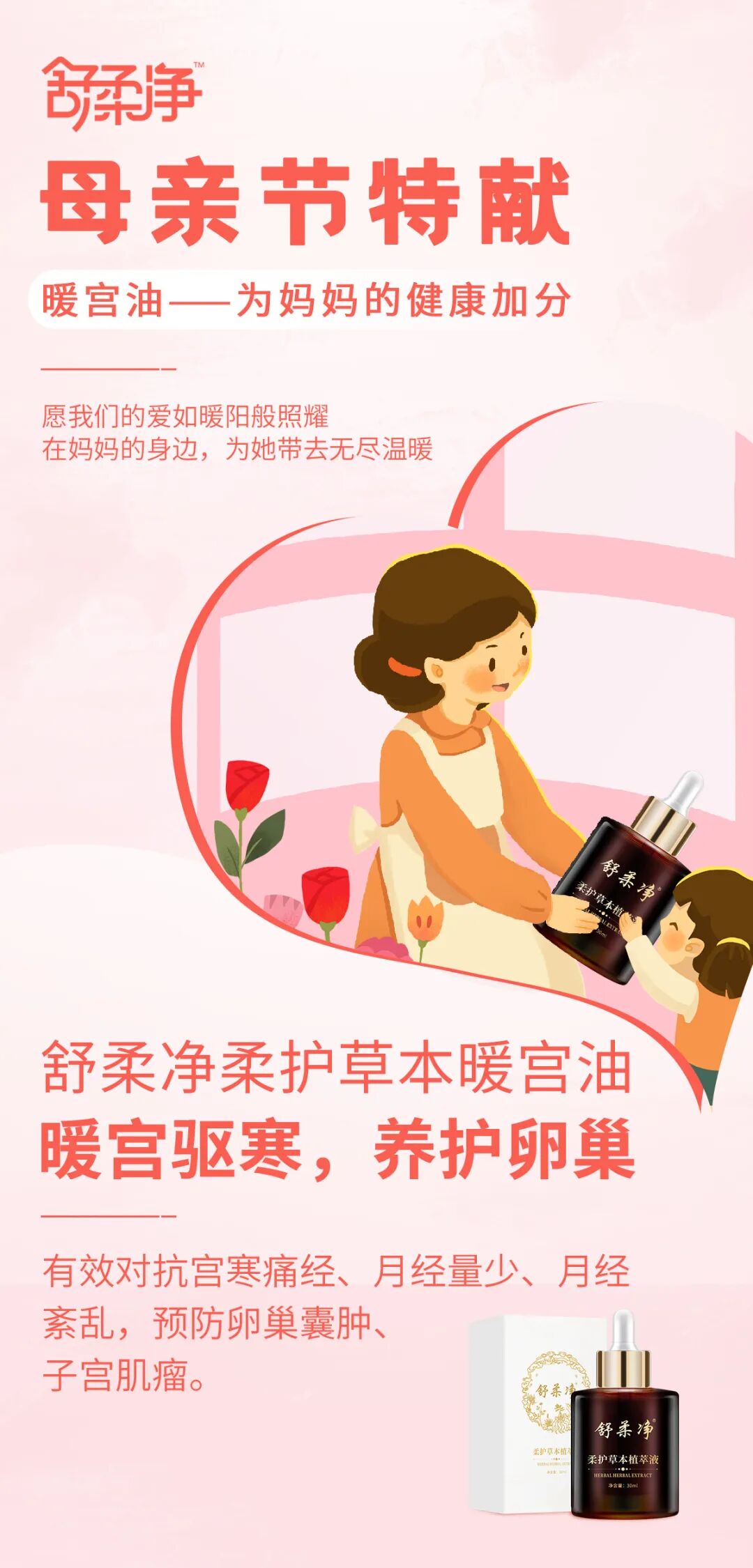 岁月温柔,表达爱意的方式有很多种。我选舒柔净暖宫油,给妈妈送一份健康贴心的母亲节礼物!