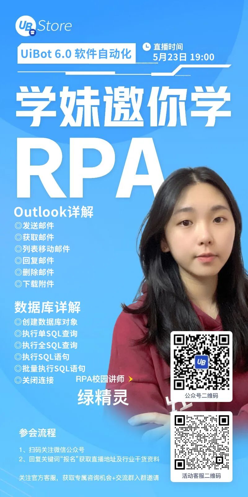 为了帮助伙伴们系统学习UiBot 6.0的相关知识,《学妹邀你学RPA之UiBot6.0精讲》系列直播课程重磅上线!