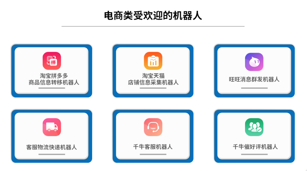 据Store君统计,目前,电商、营销、财务、商务等行业领域的机器人使用数比较靠前。