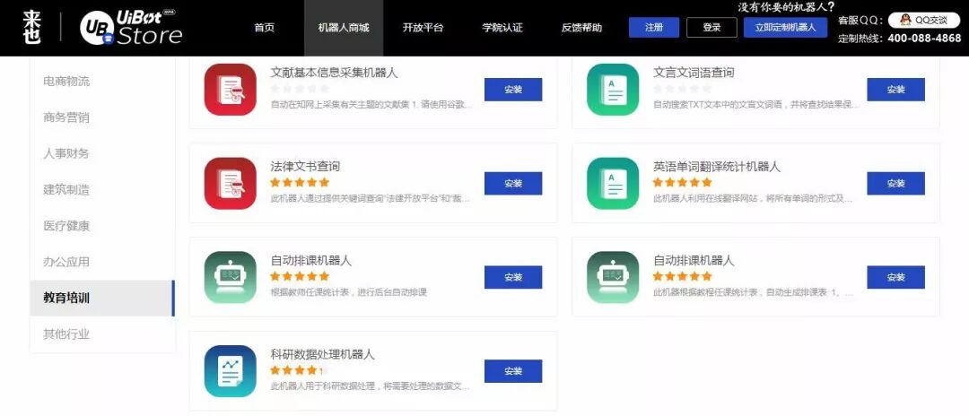 UiBot Store的“机器人商城”,已上线不少教育类的机器人。