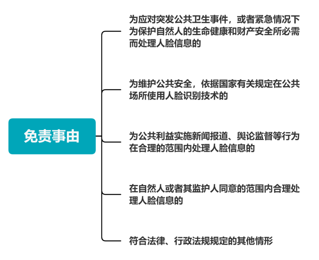 相较于《民法典》第1036条,《规定》对免责事由的细化和调整主要在于进一步强化了个人利益和公共利益的平衡,明确了应对突发公共卫生事件、维护公共安全等处理人脸信息情形下的免责。