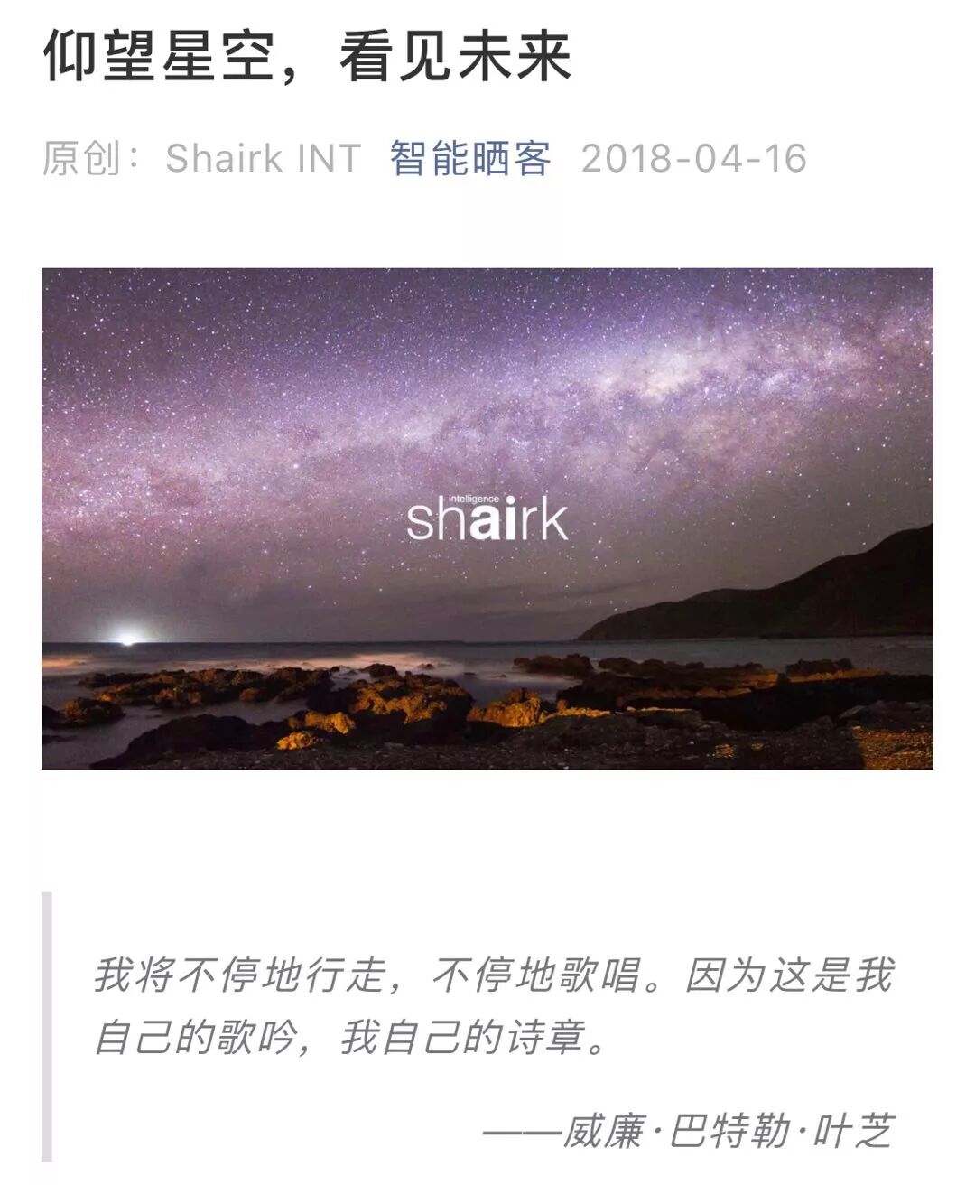翻看Shairk的第一篇推送“仰望星空,看见未来”,留恋的还是叶芝诗篇的引言,现实却可能只是“我们继续奋力向前,逆水行舟,被不断地向后推,直至回到往昔岁月”的无力和宿命,但终归我们还是要在漩涡中憧憬我们不能缺失的星辰大海。