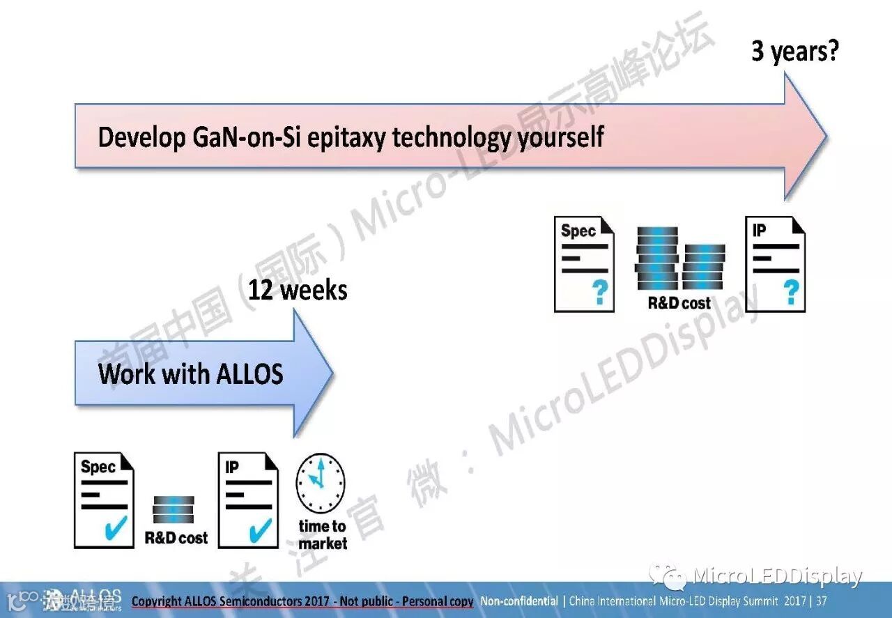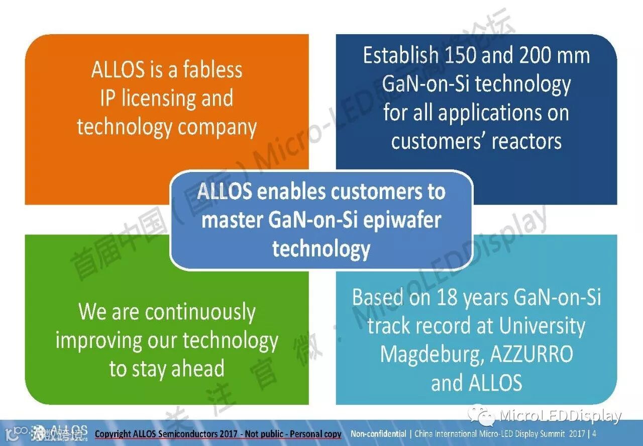 本届论坛上,ALLOS Semiconductors GmbH, CMO & co-founder , Alexander Loesing做了题为“Micro LED——制造过程中,在产量和成本上的挑战”的精彩分享。