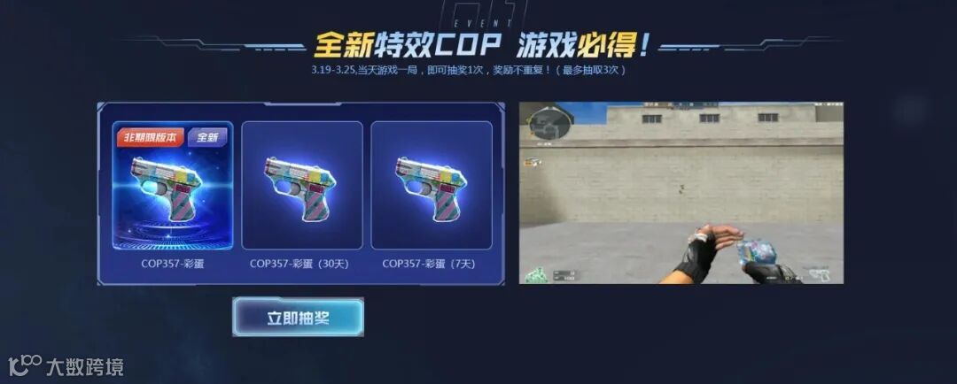 3月19日-3月25日当天游戏一局 可抽奖1次,奖励不重复,游戏3天必得永久COP357-彩蛋