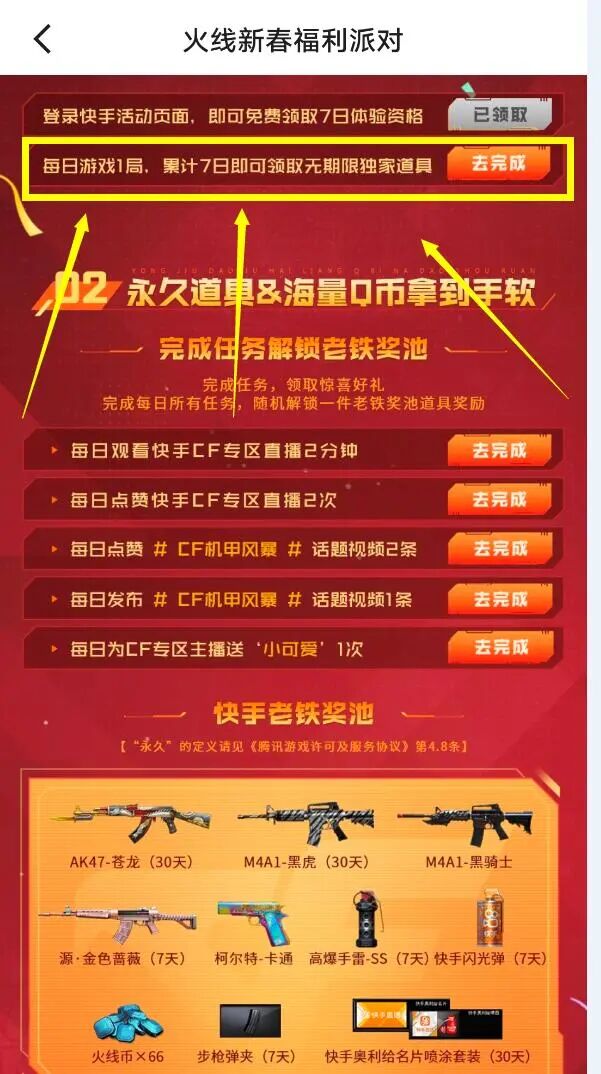 免费领CF梦-雷神-快手(永久),需游戏一局累计7天