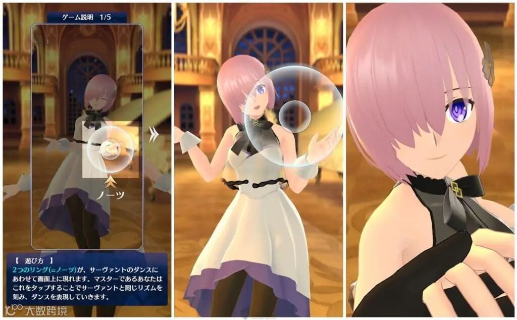 本作是一款节奏游戏,玩家将作为玛修的Master,和她一起在名为「Moonlight」的舞厅之中跳舞。在进行任务时,游戏画面中的玛修将随音乐节拍翩翩起舞,点击提示将会在她双手的位置出现,只要配合节拍,在适当时机之中点击画面即可。