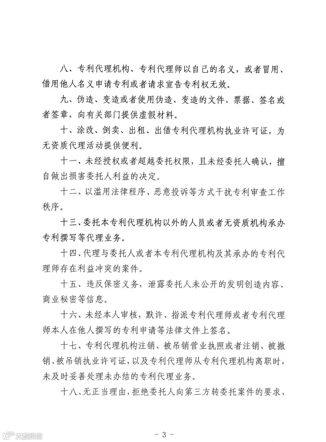 近日,中华全国专利代理师协会印发关于《专利代理禁止性从业行为清单》的通知。全文如下: