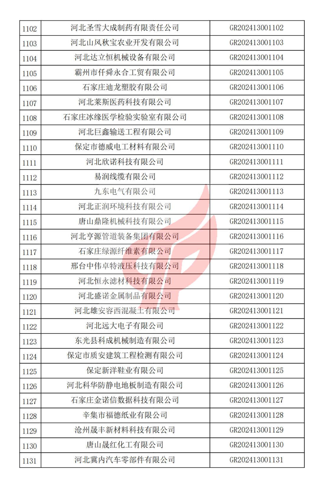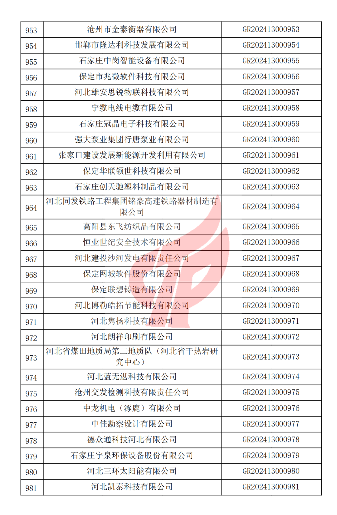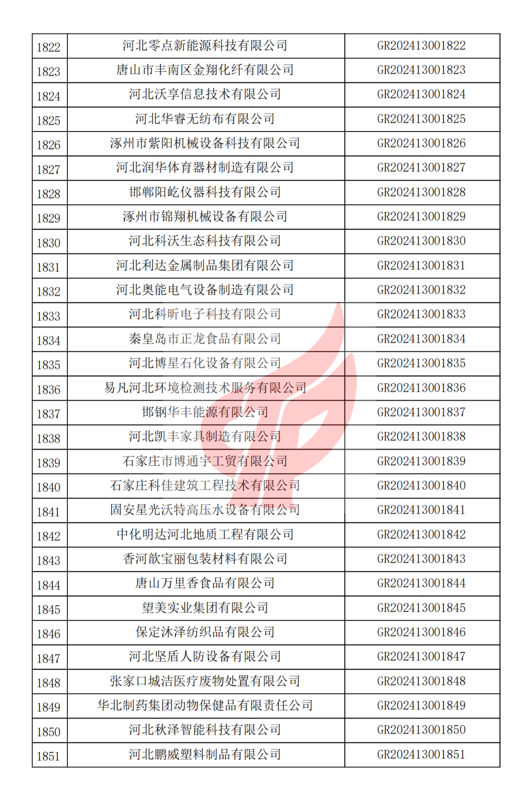 附件:河北省认定机构2024年认定报备的第一批高新技术企业备案名单