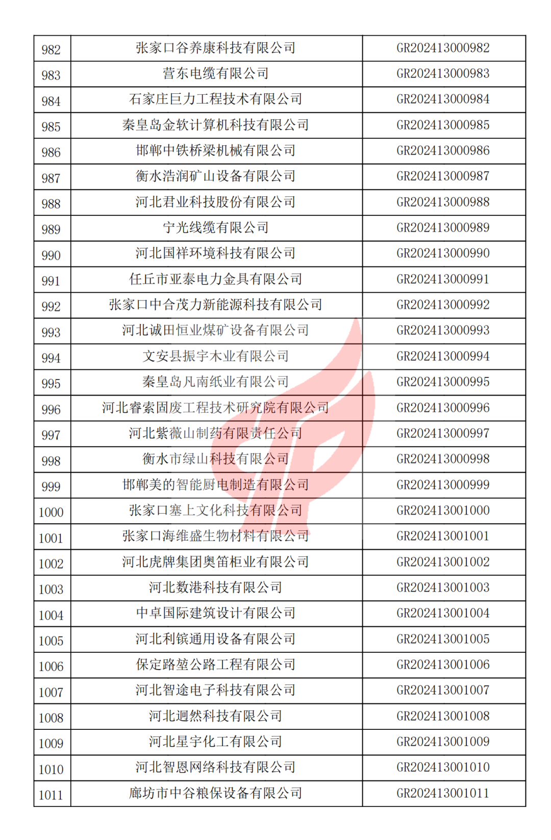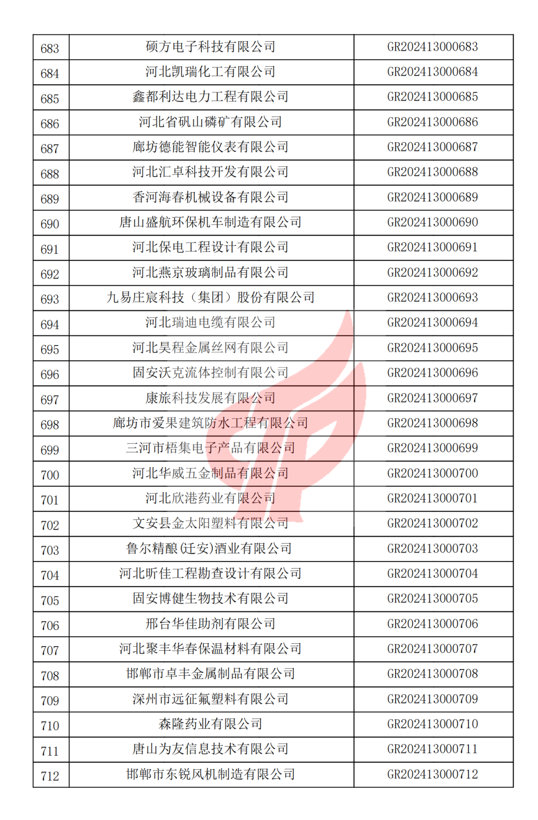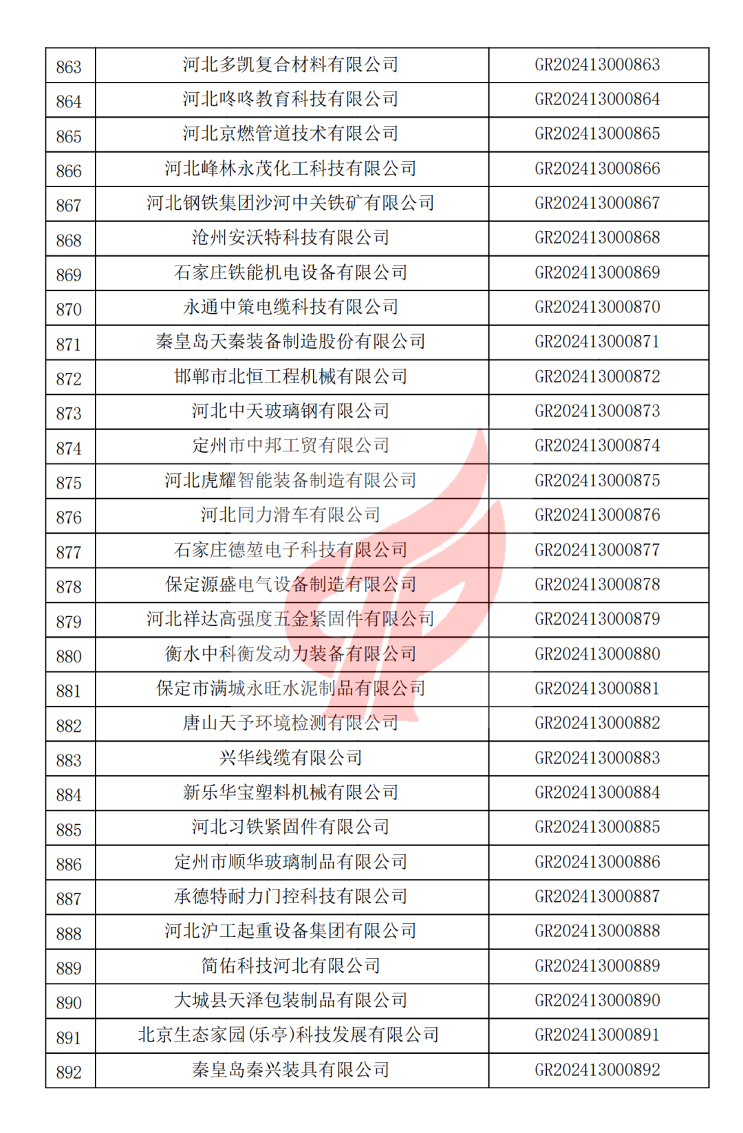 对河北省认定机构2024年认定报备的第一批高新技术企业进行备案的公告