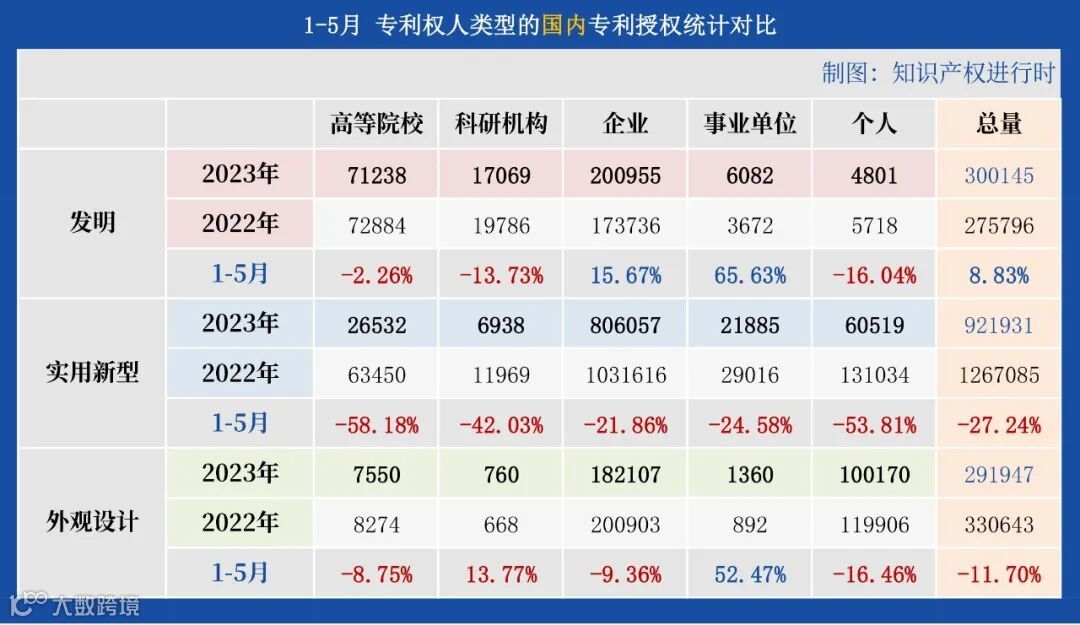 25日,国家知识产权局网站公布2023年5月知识产权主要统计数据;与2022年同期对比: