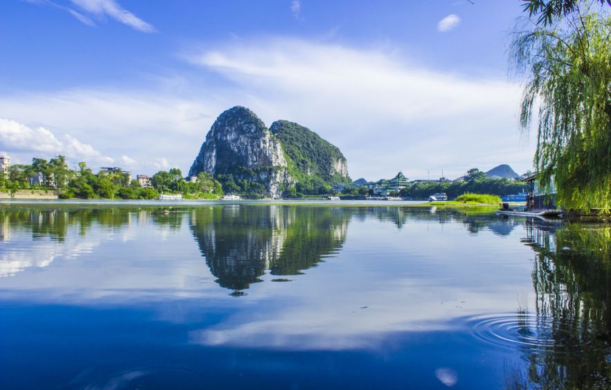 漓江是桂林山水的明珠,来桂林一定要来漓江。漓江全程很长,坐着竹筏上看青山环绕、云卷云舒,清澈的江水映透着清晰可见的水草和鹅卵石,如在画中游一般悠闲自得。如果恰逢下雨,更是能够有幸欣赏到烟雨漓江的绝美景色。4、5月的漓江江水最为饱满,风景自然更加美丽。