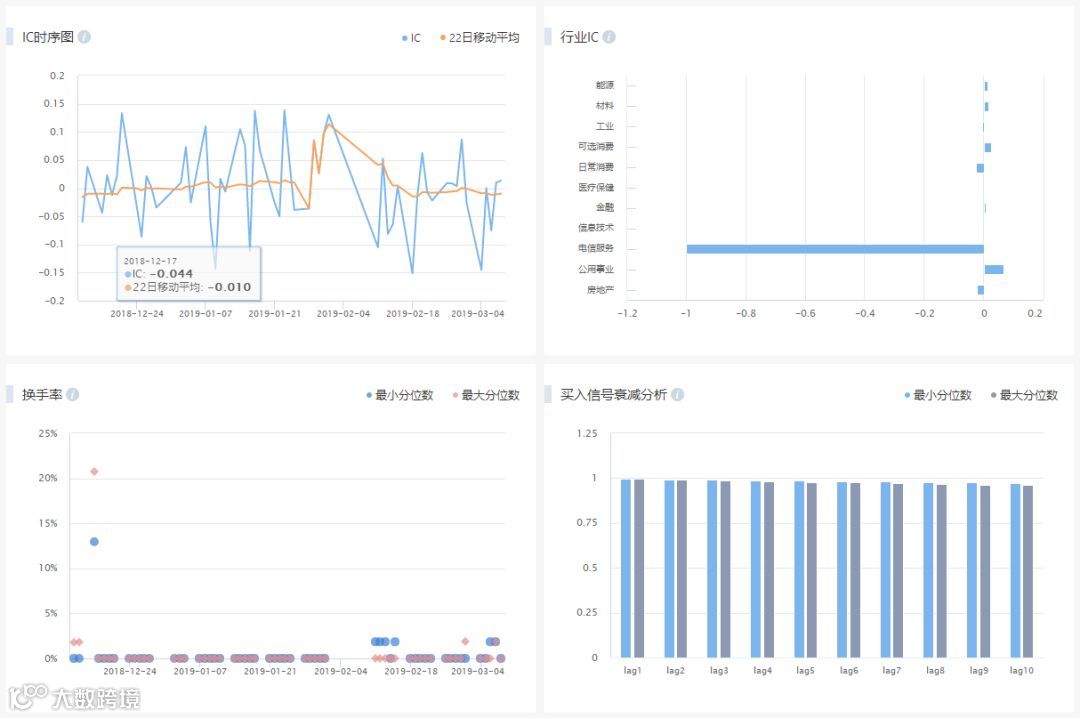 提供了收益分析、IC时序图、行业IC、换手率分析、信号衰减分析等。