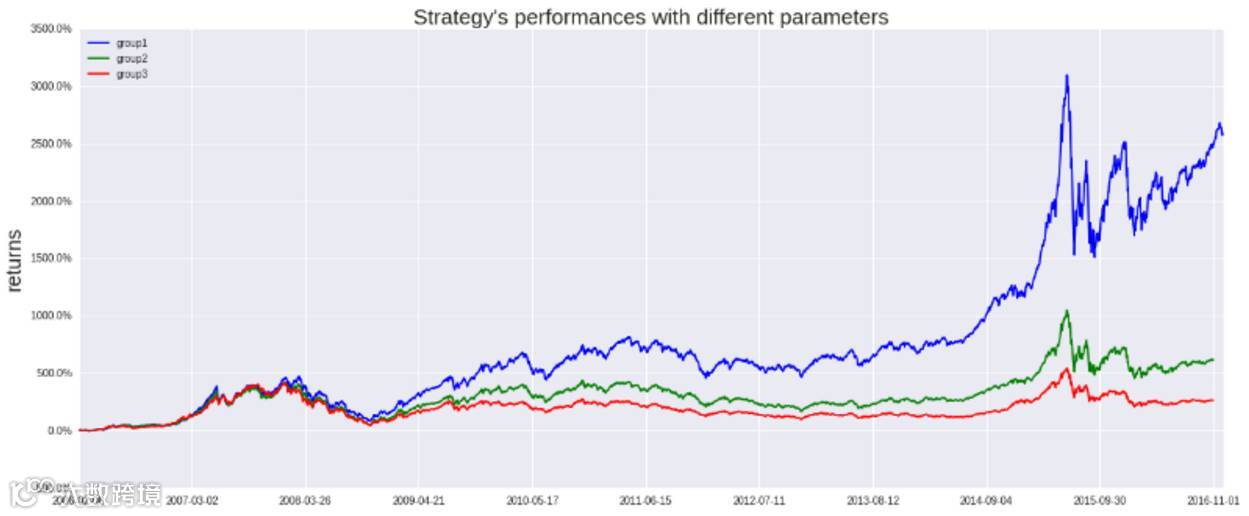 首先,我们注意到【量化课题】多回测运行和参数分析框架中给出的 BP 因子分位回测结果中,虽然从十年回测结果上看 BP 因子不同分位回报率还是比较有区分度,但是查看具体的历史走势显得凌乱混杂。下图是对比等权全指为基准的 BP 分位回报率超额收益(2006 年 2 月 1 日到 2016 年 11 月 1 日,两百万,持仓一个月每月月初调整,具体见链接)。