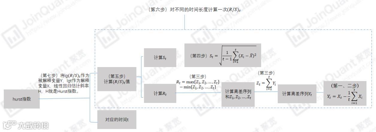 (上图是计算hurst指数的流程图,可配合以下文字一起咀嚼)