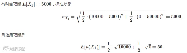 同样,E[X3]=5000,并且计算可得知 σX3≈2886.75E[u(X2)]>E[u(X1)].