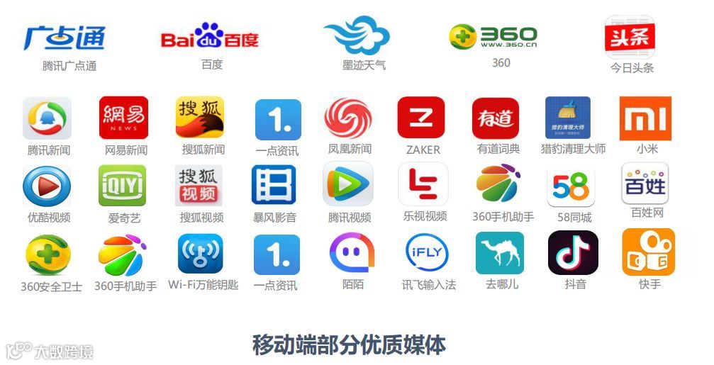 覆盖艾瑞网各类别排名前十的媒体及大部分Alexa中国排名前100的APP
