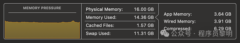 对于开发者来说,内存压力和交换内存的情况也是非常值得关注的。