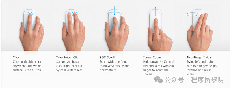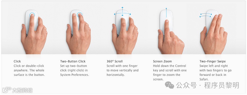 使用 Magic Mouse 大概两周后,我看到 Apple Store 的员工在演示 Magic Mouse 的用法时,才意识到,或许是我用错了。