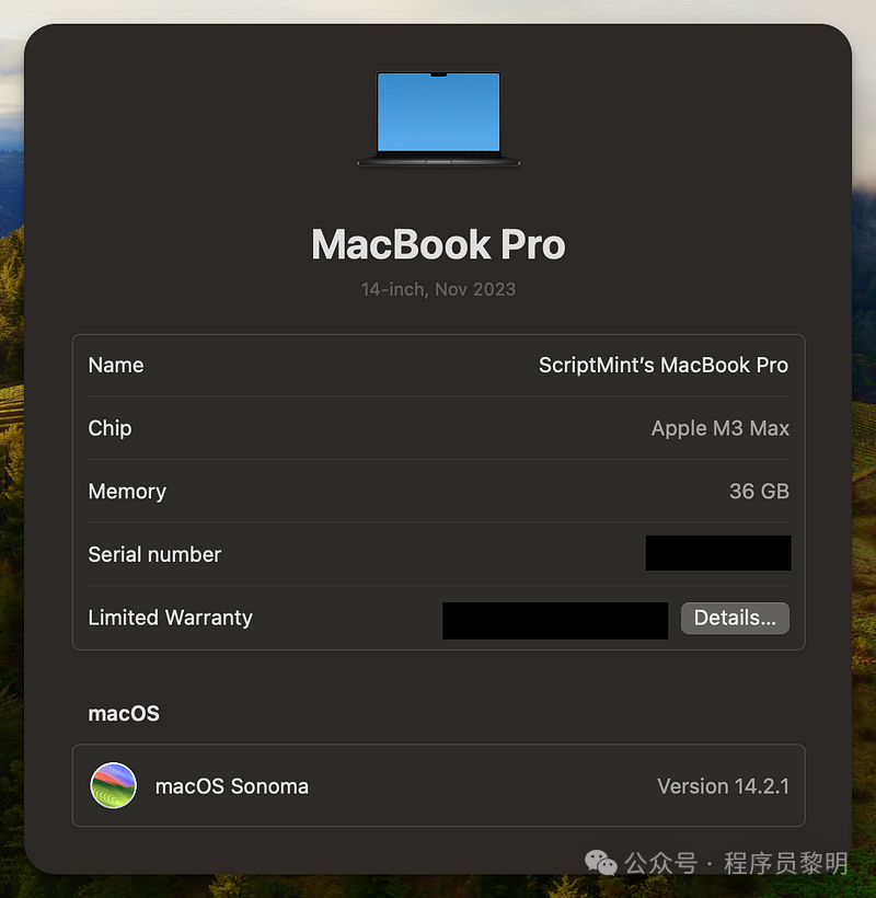 首先,我的MacBook Pro 2019款Intel版已经退役了,用的是 MacBook Pro 2023款M3 Max版本,配备了36GB内存和500GB SSD。这次我选的是14英寸型号,既方便携带,又不失性能。