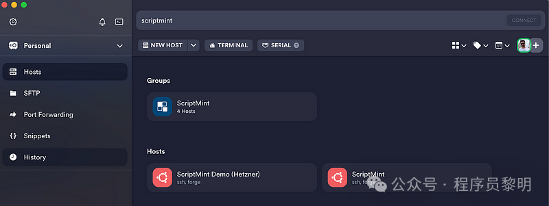 终端和SSH客户端:我使用Warp作为我的Mac终端编辑器,功能强大且现代。然后SSH连接我使用Termius,免费版足够我使用,可以轻松管理多台服务器。