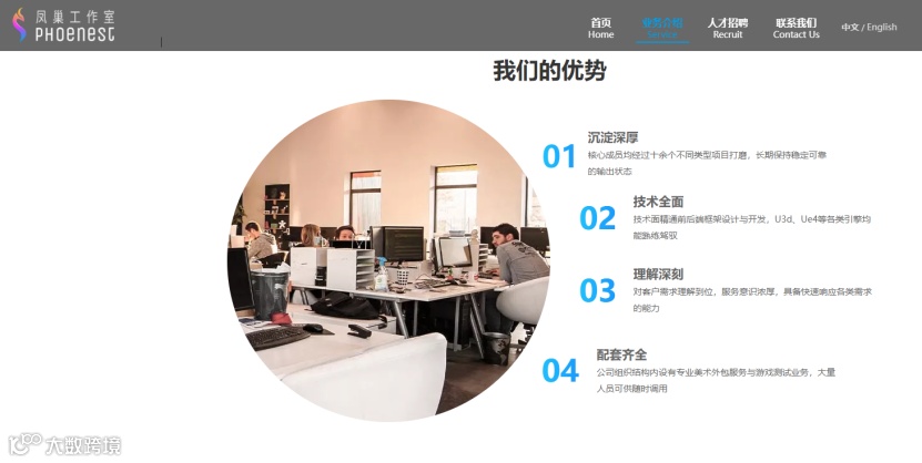 凤巢工作室业务涵盖游戏美术、游戏研发和游戏测试三大方向,是业内领先的视频游戏和娱乐内容制作公司。