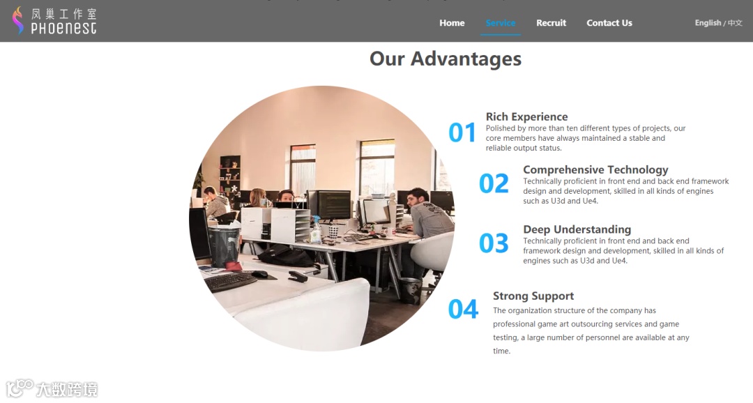 在游戏测试业务方面,凤巢工作室具备分析和内部化客户提供的知识产权,为客户构建完整产品或测试所需部分的能力。通过引入高技术和经验丰富的团队,使客户在复杂的生产、运营管理环节上节省大量宝贵时间。