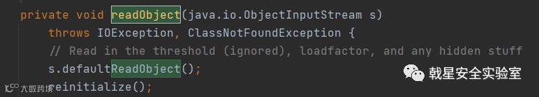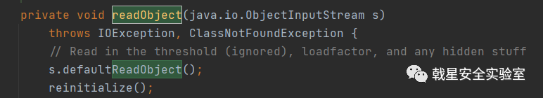 * 查看重写的readObject方法,调用了hash()的方法计算key,hash()方法就是调用key的hashCode()方法,而且这里的key是个任意泛型,所有我们可以传入任意对象。