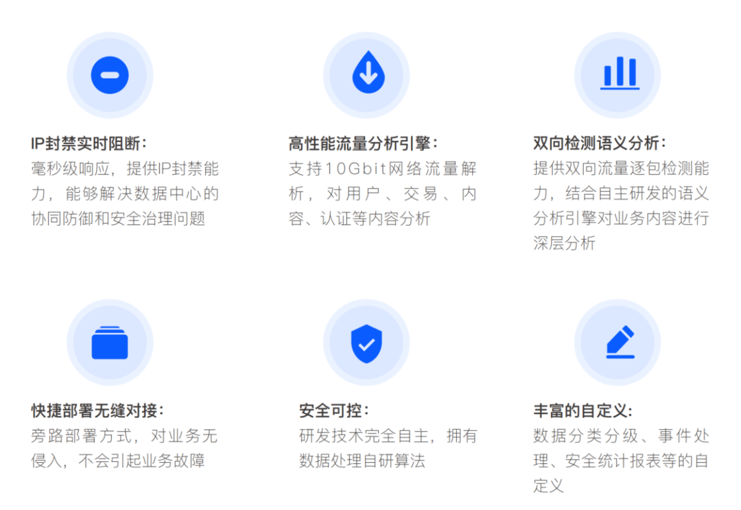 作为国家公安部认可销售的产品,忆享应用系统安全审计平台具备高精度API识别归类引擎、更快更准的中文内容识别、多维度风险引擎、IP封禁实时阻断、高性能流量分析引擎、双向检测语义分析、快捷部署无缝对接、安全可控及丰富的自定义能力等多方面的产品优势。