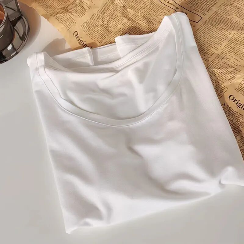 纯棉质感,贴服很柔软,加上大圆领设计,显得脖子修长,更凸显脸小哦~