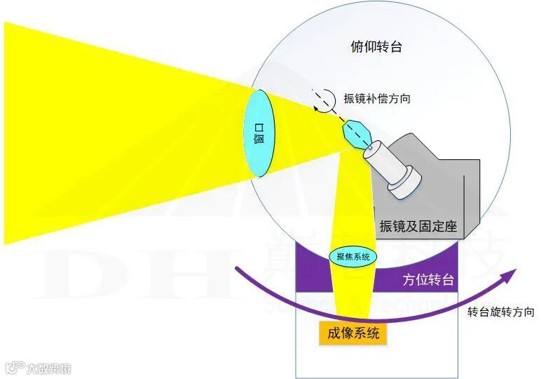 在红外全景监控系统中,方位向云台一直处于360°匀速旋转运动状态,不做任何处理的情况下,拍出来的单幅图像会带很严重的拖影,而拼接出来的图像是完全模糊的;因此,需要用动态稳像技术让图像更清晰,在云台运动过程中,根据运动的积分数据,利用一套摆扫反射装置,按拍摄帧率进行反向运动补偿;而实现这套补偿运动的装置,可以用快反镜,也可以用更经济实惠的振镜。