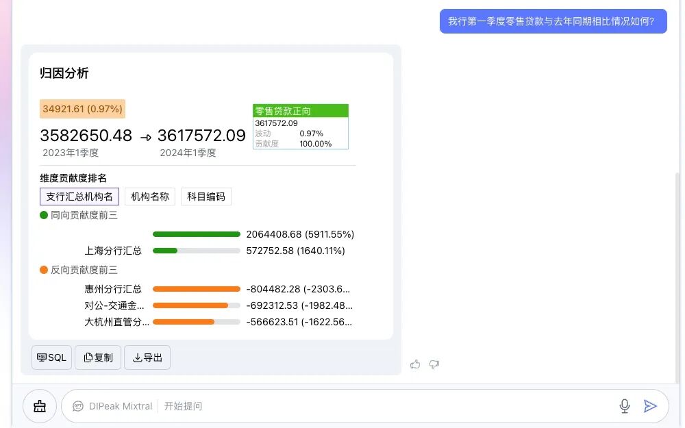自然语言交互式数据查询:通过文本和语音进行自然会话式交互,实时查询和呈现最新数据,随时获取最新指标和报表,及时做出精准决策。