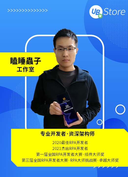 今天我们请到了UB Store金牌开发者——瞌睡蟲子工作室,分享RPA开发中的那些事,希望可以给新人开发者一些启发。