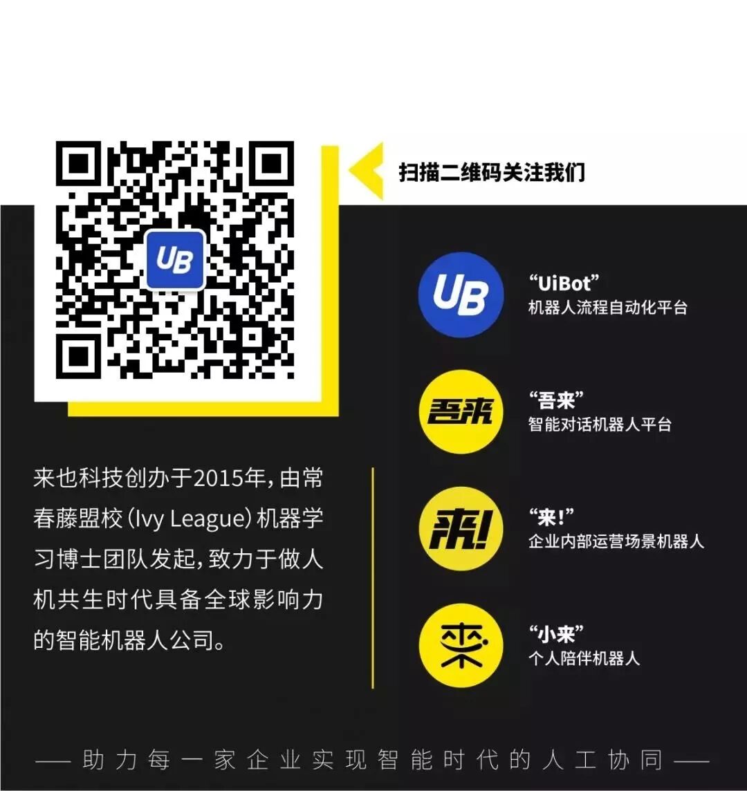 国际RPA企业一直对中国市场虎视眈眈,作为本土RPA领航者,来也科技不断打磨“让中国人觉得更好用”的RPA平台产品UiBot,为所有RPA软件行业的伙伴构建一个共享的技术平台,打造中国RPA共赢生态。