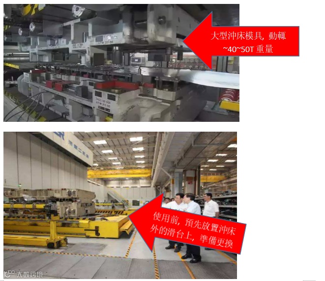 在丰田汽车精益生产中, 冲压生产, 占据了重要一项. 试想想, 车外壳的大小, 若是委外加工, 天天交货, 上午交, 下午交,上漆焗干, 物流量, 及存放面积, 所需要的管理人员及保管地方, 实在是附加价值很低的工作. 若是自己生产, 零库存的原则下, 原材料占用地方不多, 需要时才生产, 对比车身成品的库存, 绝对比原材料占地很多倍. 换模时耗是其中重要课题.