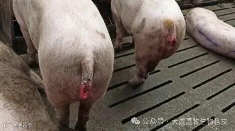 猪“咬尾症”,也称为“反不适综合症”、“猪恶癖症”、“异食癖”等。近年来随着规模化养猪业的发展,由于养分代谢机能失调、味觉反常、仔猪断奶过早、疫病防治不科学等各种应激都能够形成猪彼此咬尾、咬耳的现象,严重影响猪的健康和卖相。据材料报道:猪发生该病后,生长速度和饲料转化率要比正常猪群降低26.4%。