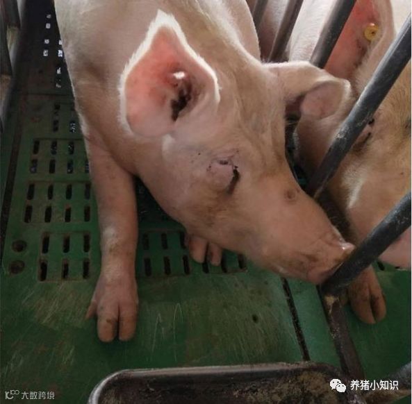 当猪群感染某些病毒性疾病时,眼睛出现眼睑水肿、结膜充血以及分泌粘性或脓性分泌物是其全身临床症状在眼睛上的表现,诸如:猪群感染猪瘟病毒、圆环病毒、蓝耳病毒等。