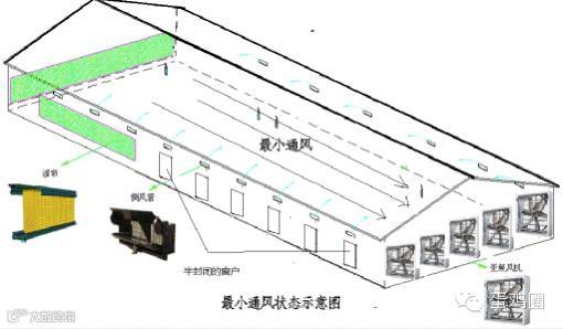 进风量与排风量相匹配。进风口风速与负压、小窗、鸡舍横截面积等因素相关,决定风从哪里进入鸡舍,风的流向和速度很重要。