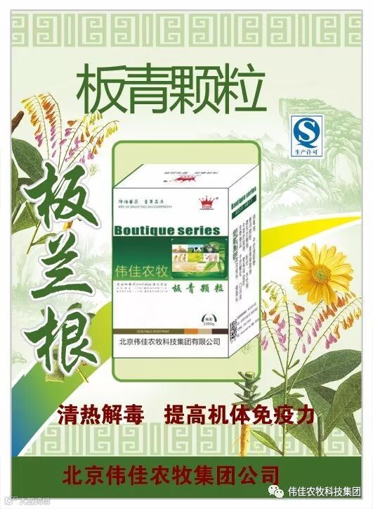 3、疫病流行期间,预防性投药,全群用北京伟佳板青颗粒1公斤/吨料、70%水溶性阿莫西林,均匀拌料,连用5天。