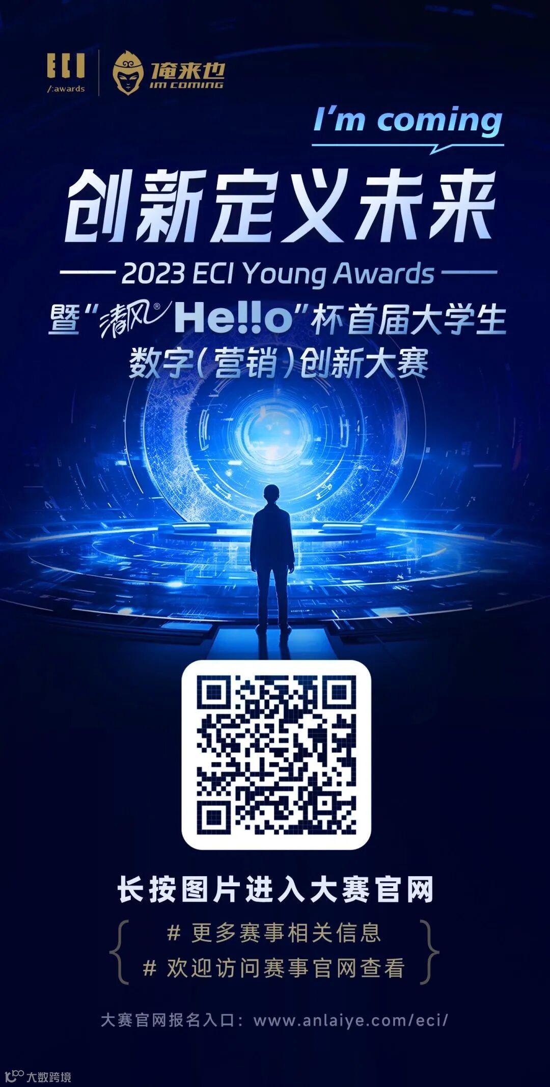 ECI Young Awards暨“清风Hello”杯首届大学生数字(营销)创新大赛已开启报名通道,诚邀全国各大学的老师同学参赛!