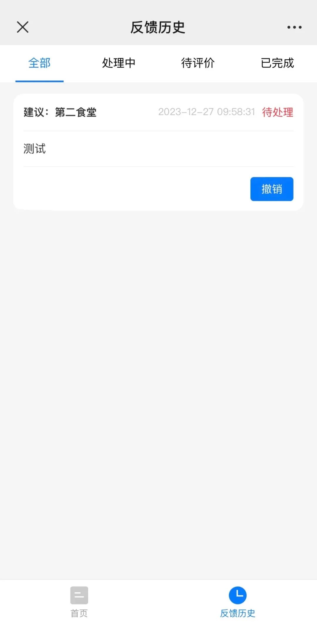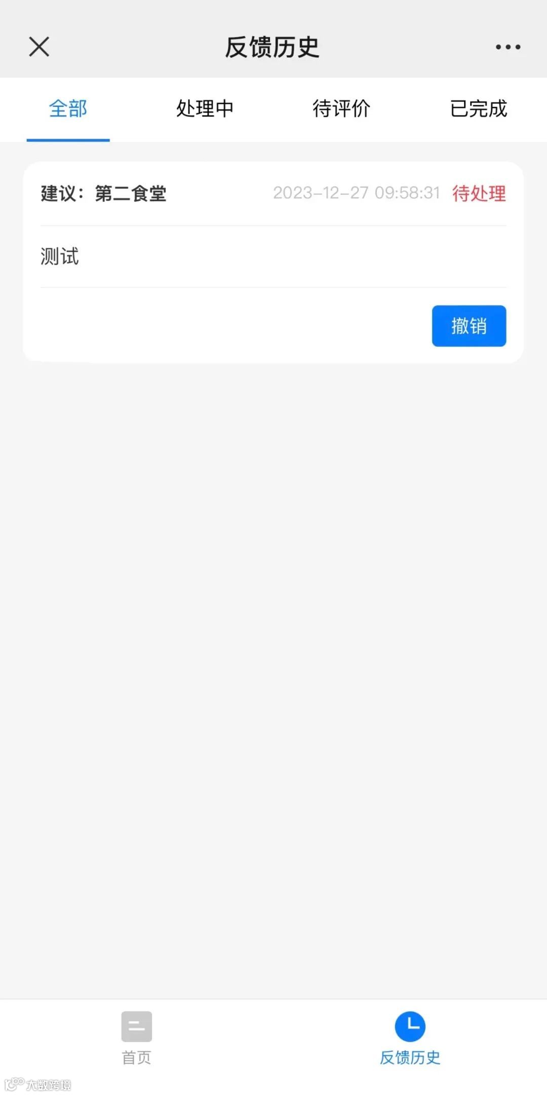 提交信息后,点击“反馈历史”可以查看处理进度。处理完毕后请支持完成评价。