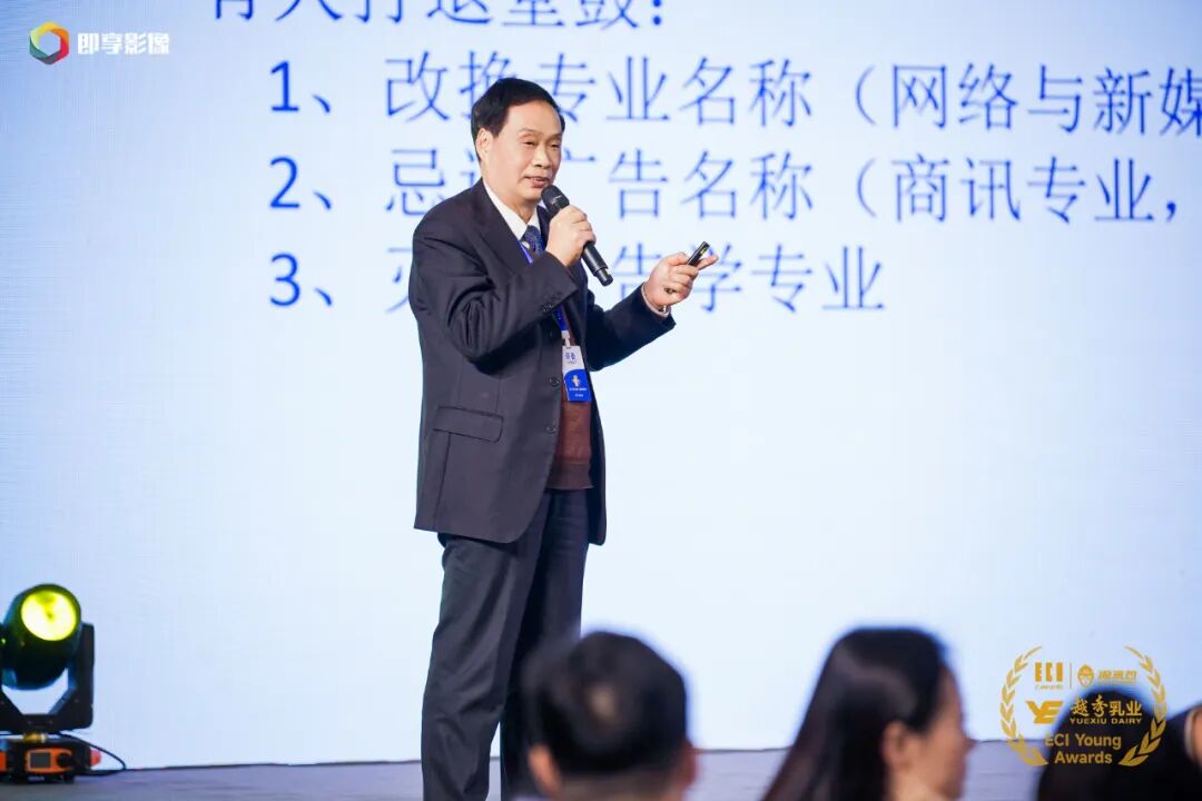 随后,中国广告教育研究会创始会长、ECI@教育创新专委会荣誉主席陈培爱教授以“中国广告学科的使命担当与产教融合的数字化转型”为题进行了演讲。他深入分析了中国广告学科在新时代所面临的机遇和挑战,阐述了产教融合在广告学科数字化转型中的重要作用,并提出了一系列具有前瞻性和可操作性的建议。