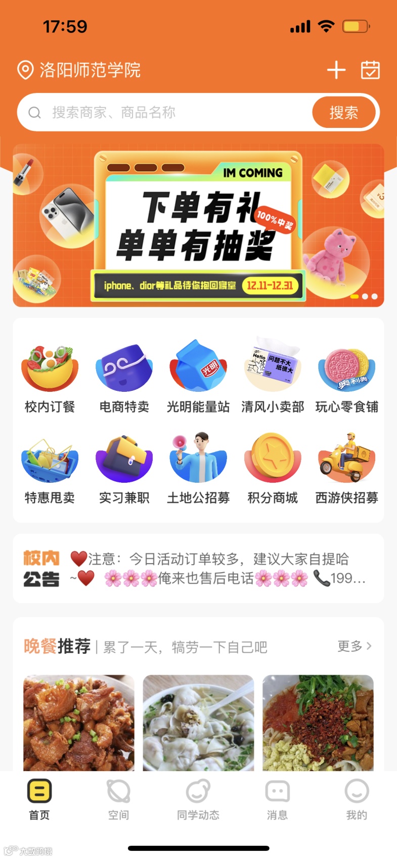 第一步:打开俺来也APP首页,点击校内订餐,选择自己心仪的档口下单。
