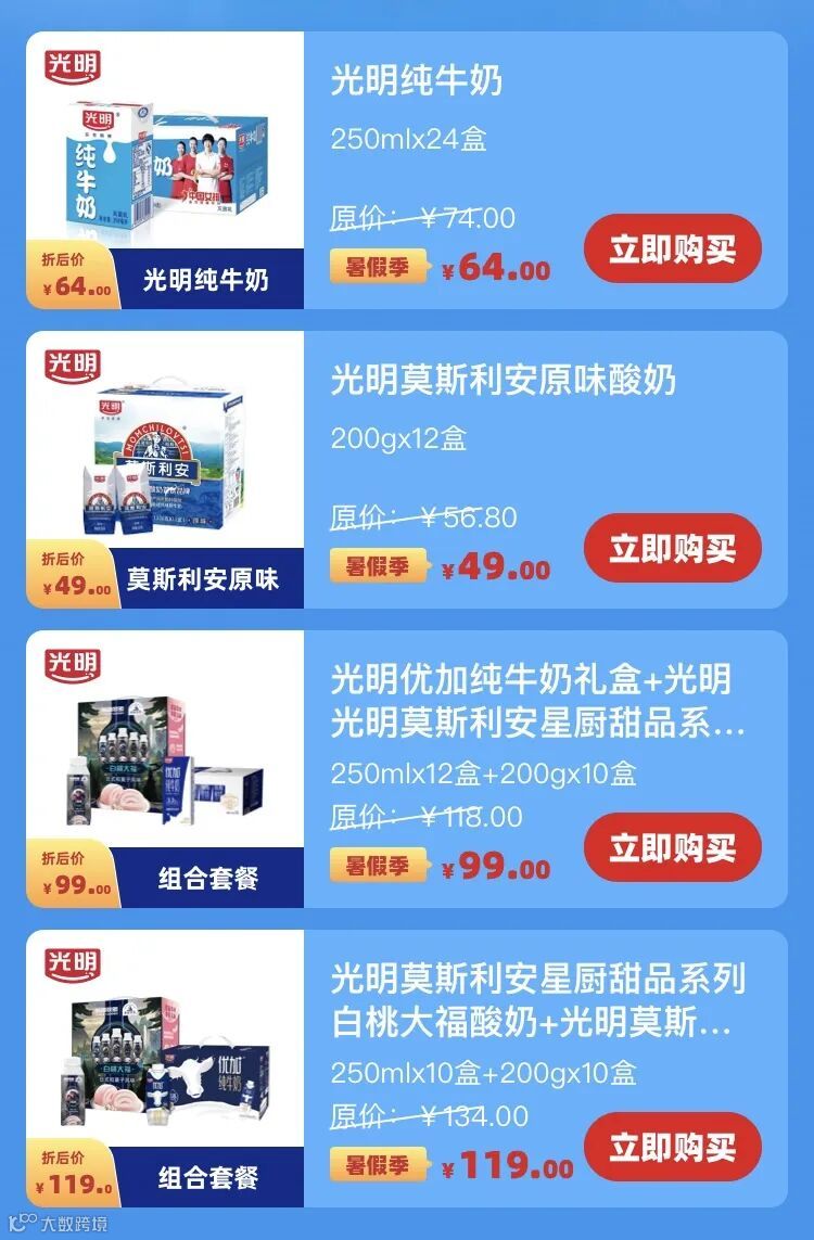 每个套餐包含光明乳业旗下