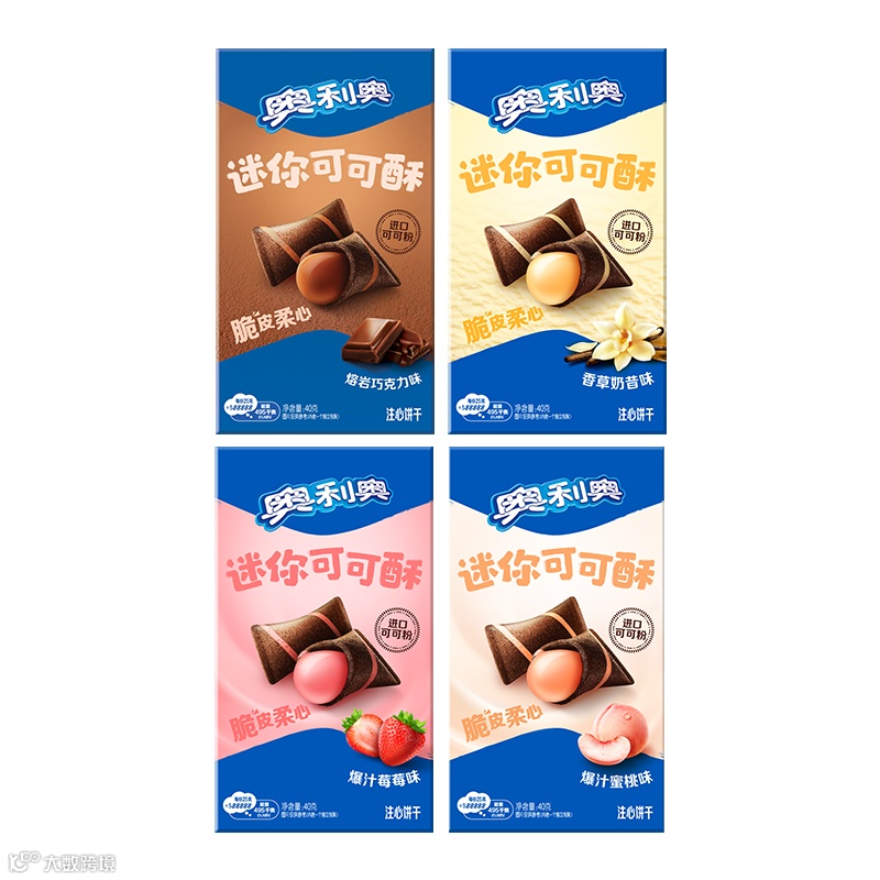 奥利奥迷你可可酥熔岩巧克力味,饱满的酥脆饼皮包裹着流心的巧克力酱,轻轻咬下表层,浓郁的巧克力香在口腔快速蔓延,让你在品尝的一瞬间,感受到熔岩般的热情与能量。