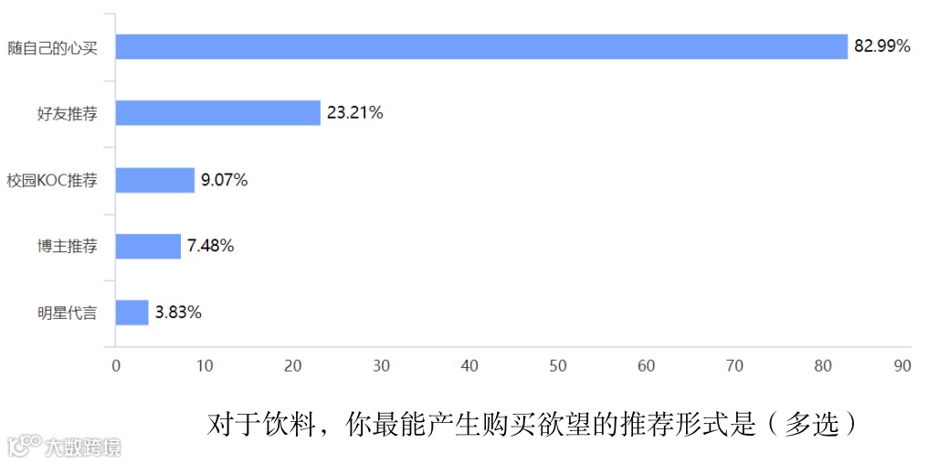 在食品饮料方面,大学生更信赖在同一圈层,拥有共同兴趣爱好,有相似经历的同龄人,建议品牌在宣传方便多使用校园koc。