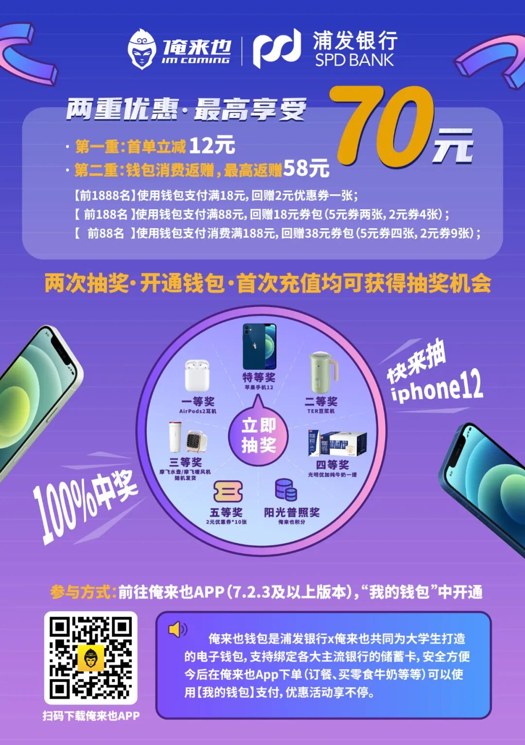 俺来也APP钱包刚上线2个月,订餐满减、消费送券、幸运抽奖,都给小伙伴们安排得妥妥贴贴,说好的优惠,从不玩儿虚的!