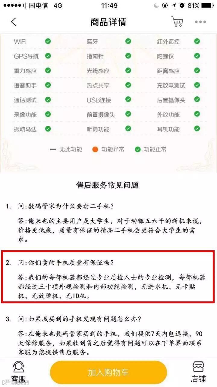 数码管家每部手机都经过三十余项检测,检测结束后确认没问题之后发出,收到货之后七天内有问题支持退换货,90天内提供保修服务。
