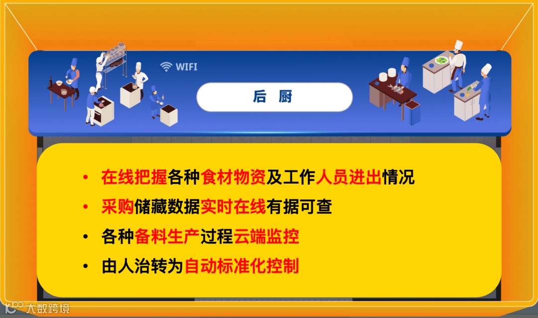 立足于大数据监测,把传统食堂运营流程的诸多环节进行数据化统筹管理,由人治转为自动标准化控制。后勤管理者可通过平台在线把握各种食材物资及工作人员进出情况,实时查询采购储藏数据,监控各种备料的生产过程。