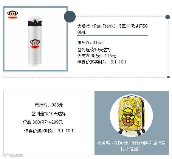 积分可用于兑换以下产品