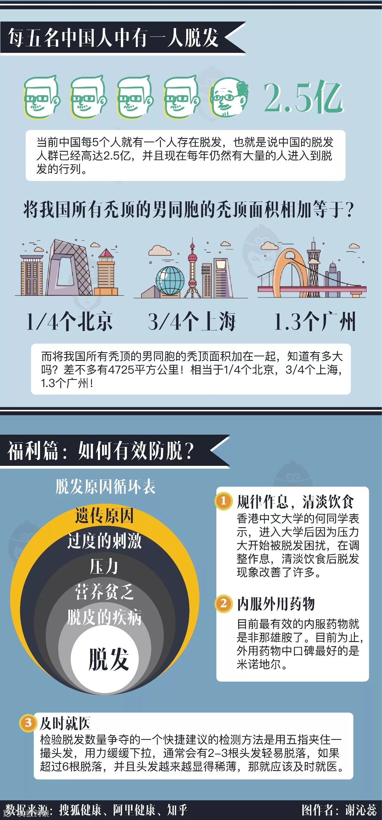 中国脱发形势也不容乐观,当前中国脱发人群已经高达2.5亿,每5个人就有一个人存在脱发,并且现在每年仍然有大量的人进入到脱发的行列。